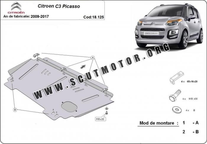 Scutul este nouă și se potrivește perfect pentru toate tipurile de motorizare Citroen C3 Picasso fabricat între ani 2009 - 2017.