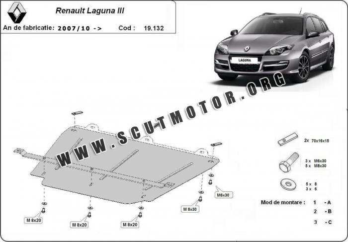 Scutul este nouă și se potrivește perfect pentru toate tipurile de motorizare Renault Laguna 3 fabricat între ani 2007 - 2015.