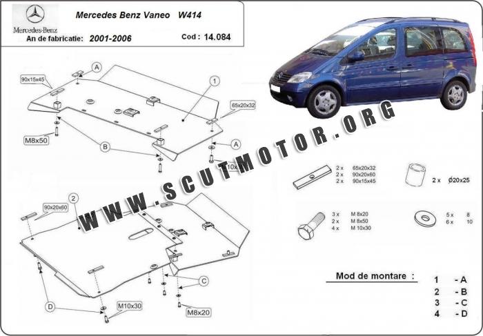 Scutul este nouă și se potrivește perfect pentru toate tipurile de motorizare Mercedes Vaneo W414 fabricat între ani 2001 - 2006.