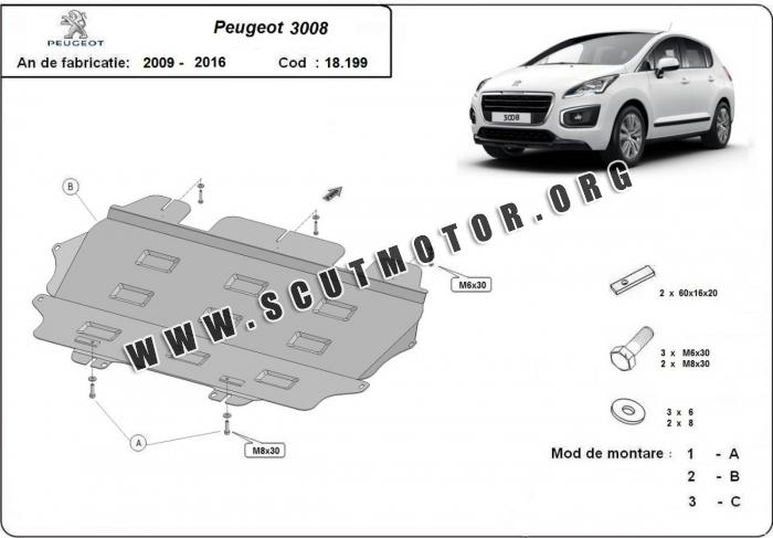 Scutul este nouă și se potrivește perfect pentru toate tipurile de motorizare Peugeot 3008 fabricat între ani 2009 - 2016.