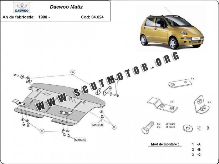 Scutul este nouă și se potrivește perfect pentru toate tipurile de motorizare Daewoo Matiz fabricat între ani 1998 - 2022.