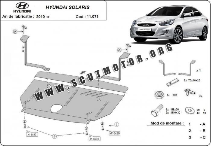 Scutul este nouă și se potrivește perfect pentru toate tipurile de motorizare Hyundai Solaris fabricat între ani 2010 - 2018.
