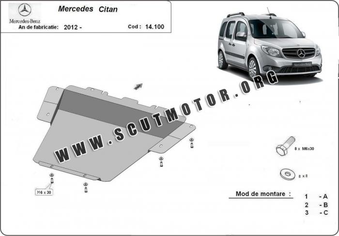 Scutul este nouă și se potrivește perfect pentru toate tipurile de motorizare Mercedes Citan fabricat între ani 2012 - 2021.