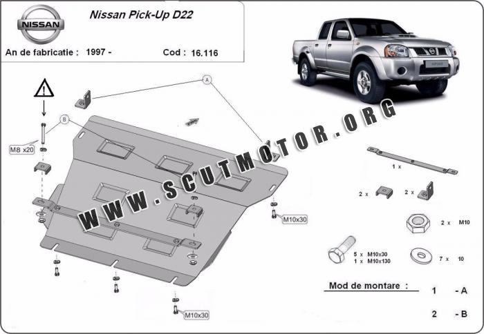Scutul este nouă și se potrivește perfect pentru toate tipurile de motorizare Nissan Pick Up (D22) fabricat între ani 1997 - 2004.