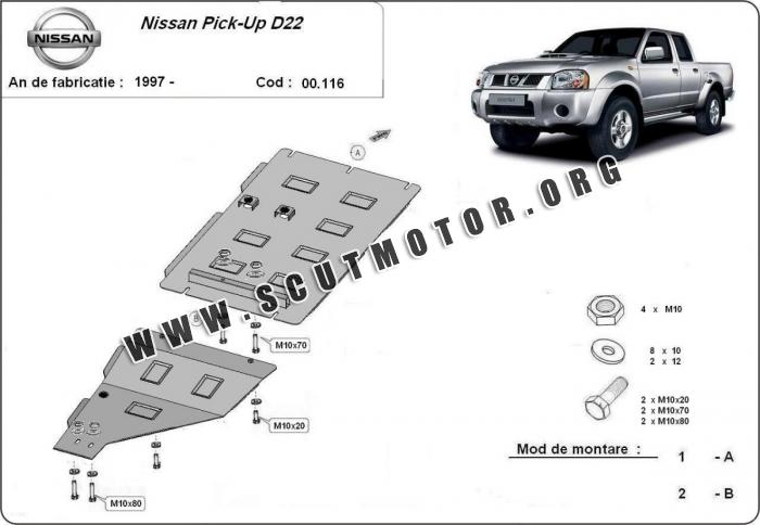 Scutul este nouă și se potrivește perfect pentru toate tipurile de motorizare Nissan Pick Up (D22) fabricat între ani 1997 - 2004.