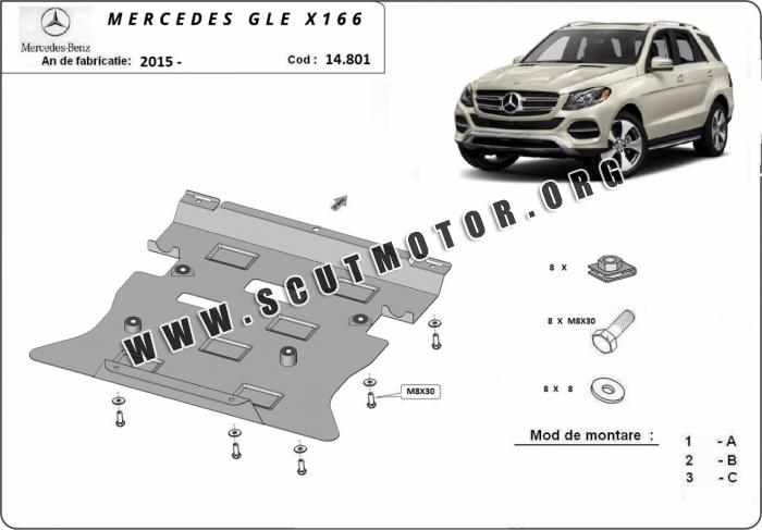 Scutul este nouă și se potrivește perfect pentru toate tipurile de motorizare Mercedes GLE X166 fabricat între ani 2015 - 2019.