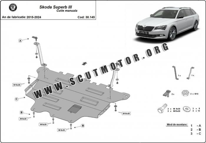 Scut motor metalic Skoda Superb - cutie de viteză manuală 2015 - 2024