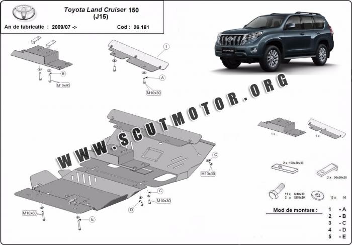 Scutul este nouă și se potrivește perfect pentru toate tipurile de motorizare Toyota Land Cruiser 150 fabricat între ani 2009 - 2026.