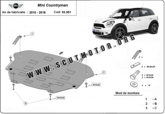 Scutul este nouă și se potrivește perfect pentru toate tipurile de motorizare Mini Countryman fabricat între ani 2010 - 2026.